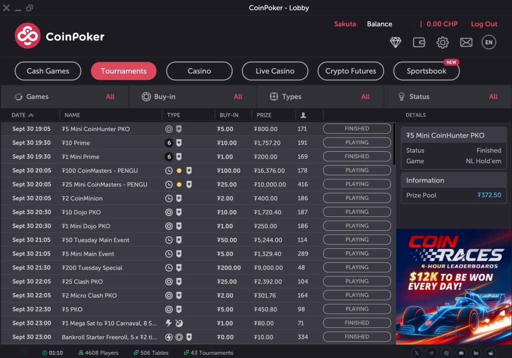 CoinPoker may change the rake for specific tables or certain tournaments — usually, a notification is posted in the lobby about this.