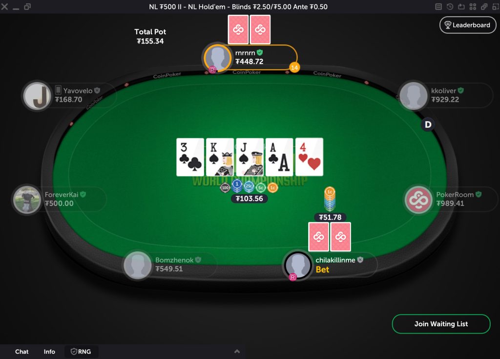 An interesting feature of CoinPoker is its blockchain-based RNG, which is fully decentralized. Thanks to the exchange of encryption keys between players and a unique method of applying this system to shuffle the deck, nobody can track or see the players’ hole cards.