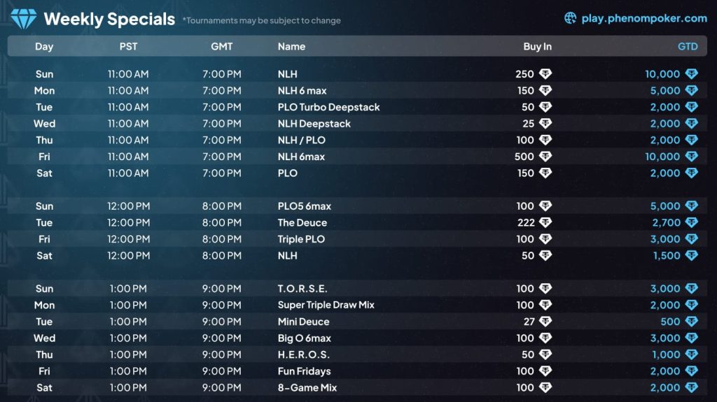 Phenom Poker’s Biggest Weekly Tournaments Schedule: